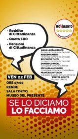 RENDE (CS) – Farà tappa anche a Rende il tour informativo voluto dal deputato Riccardo Tucci, per illustrare ai cittadini il funzionamento delle due leggi-bandiera del Movimento 5 Stelle: Reddito di cittadinanza e Quota 100. L’evento si terrà venerdì 22 febbraio, con inizio previsto per le 17,30 nella sala Tokio del Museo del Presente. All’incontro parteciperanno i deputati del Movimento 5 Stelle Anna Laura Orrico e Massimo Misiti, i consiglieri pentastellati dei Comuni di Rende e Castrolibero, Domenico Miceli e Michaela Anselmo. Saranno altresì presenti il candidato a sindaco per il Comune di Rende, Francesco Turco (Movimento 5 Stelle) e il docente dell’Unical Walter Nocito. Il reddito di cittadinanza è una misura di reinserimento nel mondo del lavoro che serve a integrare i redditi familiari. I suoi obiettivi sono migliorare l’incontro tra domanda e offerta, aumentare l’occupazione e contrastare la povertà e le disuguaglianze. Quota 100 è invece un provvedimento che consente ai lavoratori, che ne abbiano i requisiti, di andare in pensione in anticipo rispetto al passato, superando così i paletti imposti dalla legge Fornero. Tutti i dettagli relativi alle due leggi saranno trattati e spiegati nel corso dell’evento.