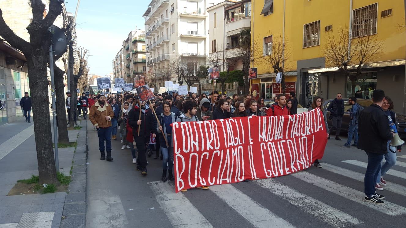 COSENZA – Corteo in centro città a Cosenza contro la riforma dell’esame di maturità. Gli studenti bruzi hanno accolto l’appello nazionale della mobilitazione contro quello che a partire da quest’anno sarà il nuovo Esame di Stato. “Saremo una costante spina nel fianco contro l’ennesimo governo che vuole distruggere il sistema nazionale di diritto allo studio”. Così Giulia Biazzo coordinatrice nazionale dell’Unione degli studenti in merito alle manifestazioni che si stanno svolgendo contemporaneamente oggi in 30 piazze contro la nuova maturità e la regionalizzazione. “La regionalizzazione della scuola senza una legge nazionale sul diritto allo studio è un’impresa tutta leghista che ignora il definanziamento della scuola pubblica nel Paese e conferma il tradimento di questo Governo nei nostri confronti – aggiunge – Della democrazia non c’è traccia: la Riforma della maturità ne è esempio con l’introduzione delle prove invalsi al quinto anno, l’eliminazione della tesina e la centralità dell’alternanza scuola-lavoro rendono inaccettabile il nuovo esame di maturità. È l’ennesima riforma che non dà risposte ai problemi reali della scuola e che non prende in considerazione il punto di vista studentesco”. Secondo la coordinatrice “non basta riformare l’esame di Stato e regionalizzare il sistema per risolvere le gravi mancanze di questo Governo in legge di bilancio in materia di istruzione. In autunno lo abbiamo rivendicato nelle piazze e torniamo a farlo oggi straordinariamente in primavere dopo una settimana di occupazioni ed autogestioni: costruiamo un’uscita di sicurezza contro questo Governo”.