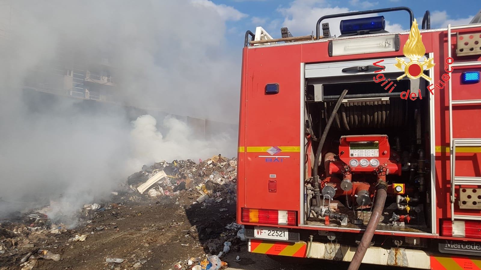 LAMEZIA TERME (CS) – Squadre dei vigili del fuoco del distaccamento di Lamezia Terme e della sede Centrale di Catanzaro con il supporto di autobotte sono impegnate in Località Scordovillo presso accampamento nomadi per l’ennesimo incendio di cataste di gomme e quintali di rifiuti solidi di vario genere. La grossa fumata nera visibile anche a chilometri di distanza ha subito creato disagi al vicino ospedale ed alle abitazioni della zona.