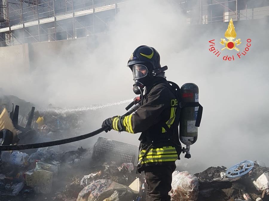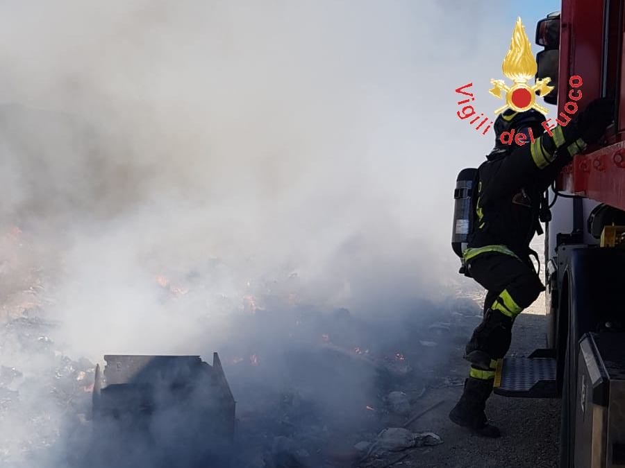 In supporto ai vigili del fuoco, per agevolare l’opera di spegnimento, è giunto sul posto un mezzo meccanico da cantiere (messo a disposizione dalla Cooperativa Sociale Malgrado Tutto di Lamezia Terme) per lo smassamento delle cataste di rifiuti.