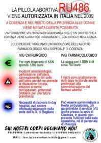 Tra le ragioni della protesta l’impossibilità nell’intera provincia cosentina di poter interrompere una gravidanza usando la pillola abortiva costringendo le donne a sottoporsi ad interventi chirurgici che al Sistema Sanitario Nazionale costano almeno 1.200 euro