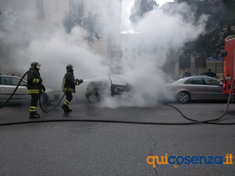 COSENZA – Fiamme e traffico bloccato su via Roma nel centro della città di Cosenza. Oggi pomeriggio, intorno alle 16:00, una Volkswagen Lupo parcheggiata lato strada, per cause ancora in corso d’accertamento è stata avvolta all’improvviso da un rogo. Il proprietario, nel momento in cui ha provato a mettere in moto l’auto, ha visto esplodere una scintilla di fuoco e si è subito allontanato dal mezzo. Ad intervenire sul posto sono stati i Vigili del Fuoco che in pochi minuti hanno spento l’incendio, evitando che si estendesse alle auto vicine, e messo in sicurezza l’area. Il quartiere è stato invaso da una colonna di fumo, mentre gli agenti della Questura di Cosenza hanno provveduto a bloccare il traffico per agevolare le operazioni dei Vigili del Fuoco e tutelare l’incolumità dei passanti. Terminato l’intervento la strada è stata riaperta al transito.