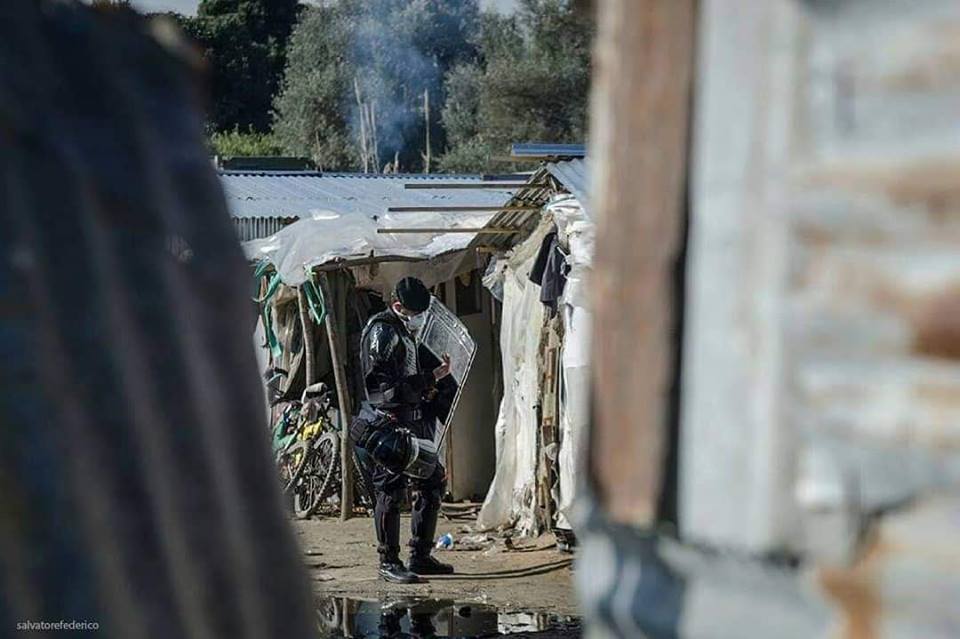 La nuova politica promossa da un anno a questa parte dal Ministro degli Interni, in continuità con le leggi attuate dal suo predecessore Marco Minniti, vede accentuare ancor di più il carattere diretto dello Stato e l’estirpazione dei rami secchi senza risolvere il problema alla radice. Il giorno dello sgombero, più di 600 agenti hanno messo in atto, in pieno stile ‘salviniano’, l’opera di distruzione di tutte le baracche presenti nell’area, con annesso show mediatico, e la deportazione di tutti coloro che vivevano nella tendopoli verso un’ignota destinazione. In una terra in cui la ‘ndrangheta regna sovrana, il caporalato regola l’economia dei campi, i braccianti vengono costretti a lavorare in condizioni disumane e per una misera paga, l’unica soluzione che viene messa in atto è quella dell’ennesimo annientamento fisico e morale di ciò che non è la causa, bensì l’effetto, della decadenza in cui la politica italiana versa e continua inesorabilmente a farlo. Come Progetto Azadì sentiamo di dare tutta la nostra solidarietà a coloro i quali sono stati colpiti da questa operazione e che continuano a vivere nella precarietà e nella paura di essere rimandati nei luoghi da cui sono scappati, con la speranza che prima o poi tutte e tutti possano avere un posto in cui vivere e delle condizioni lavorative dignitose. Abbiamo deciso di raccogliere la testimonianza diretta di Salvatore Federico, un fotoreporter indipendente che da anni è impegnato su diversi fronti sul territorio contro le ingiustizie sociali e che segue da vicino la questione di San Ferdinando.