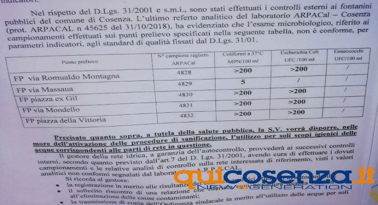 acqua contaminata Cosenza