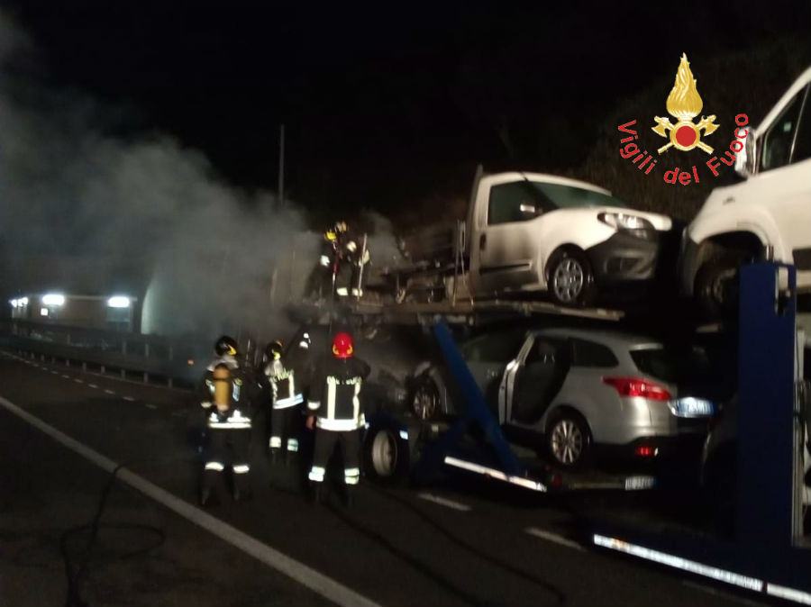 Il mezzo interessato dal rogo una motrice con bisarca a due piani specifico per il trasporto di autoveicoli. L’incendio originatosi dalla motrice si è propagato a quattro degli otto autoveicoli trasportati. Il tratto di autostrada interessato è stato chiuso al transito.