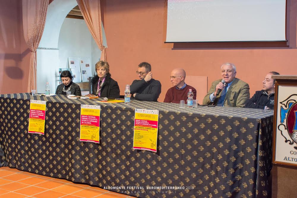 ALTOMONTE (CS) – “Eredità culturale, turismo scolastico, storico, letterario in Calabria. Da Filippo Sangineto a Tommaso Campanella” è stato il tema trattato durante gli Incontri di Primavera del Festival Euromediterraneo di Altomonte al quale hanno partecipato un centinaio di studenti delle scuole medie. A parlare con loro dell’importanza della cultura, della conoscenza e dei grandi protagonisti della storia di Altomonte come Filippo Sangineto e Tommaso Campanella sono stati il direttore artistico del Festival Euromediterraneo Antonio Blandi; lo scrittore e docente emerito di Storia dell’arte nei licei Mario Vicino; il presidente del Parco Tommaso Campanella William Gatto; Elena Giorgiana Mirabelli docente corsi esterni della Scuola Holden e redattrice Arcadia book&service; il portavoce di Slow Food Calabria Maurizio Rodighiero e Antonello Grosso La Valle, presidente Unpli provincia di Cosenza.