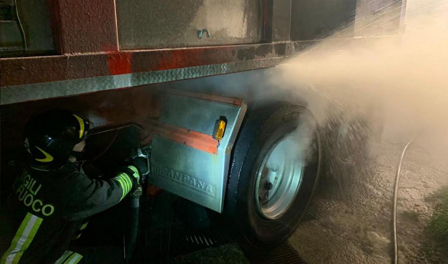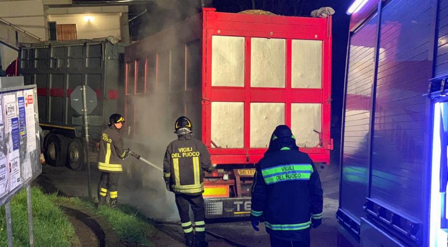 Paura a Rose per un principio incendio ad un camion carico di scaglie di legno