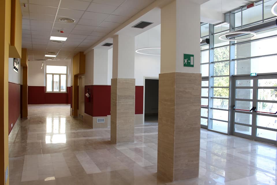 L’ingresso principale è stato restaurato e restituito nell’ottica di offrire uno spazio polifunzionale e di servizio per i cittadini/utenti. Per tale ragione intendo ringraziare ed esprimere un plauso al commissario Achille Gentile, per il buon lavoro che sta svolgendo nella direzione della struttura, specie in questi ultimi anni, anche nella organizzazione dei nuovi reparti, e nei risultati raggiunti dal punto di vista medico-scientifico.