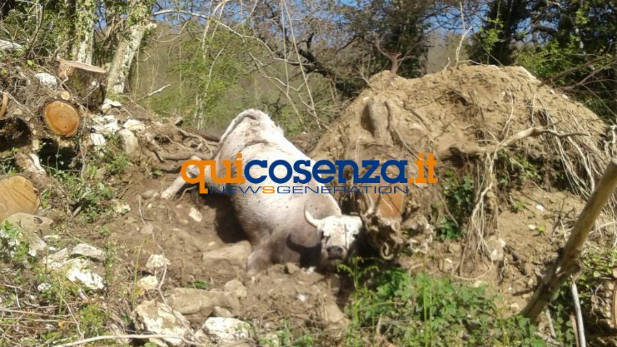L’animale senza vita lasciato a decomporsi nel fango nei pressi della Strada Provinciale 45 nel comune di Mendicino