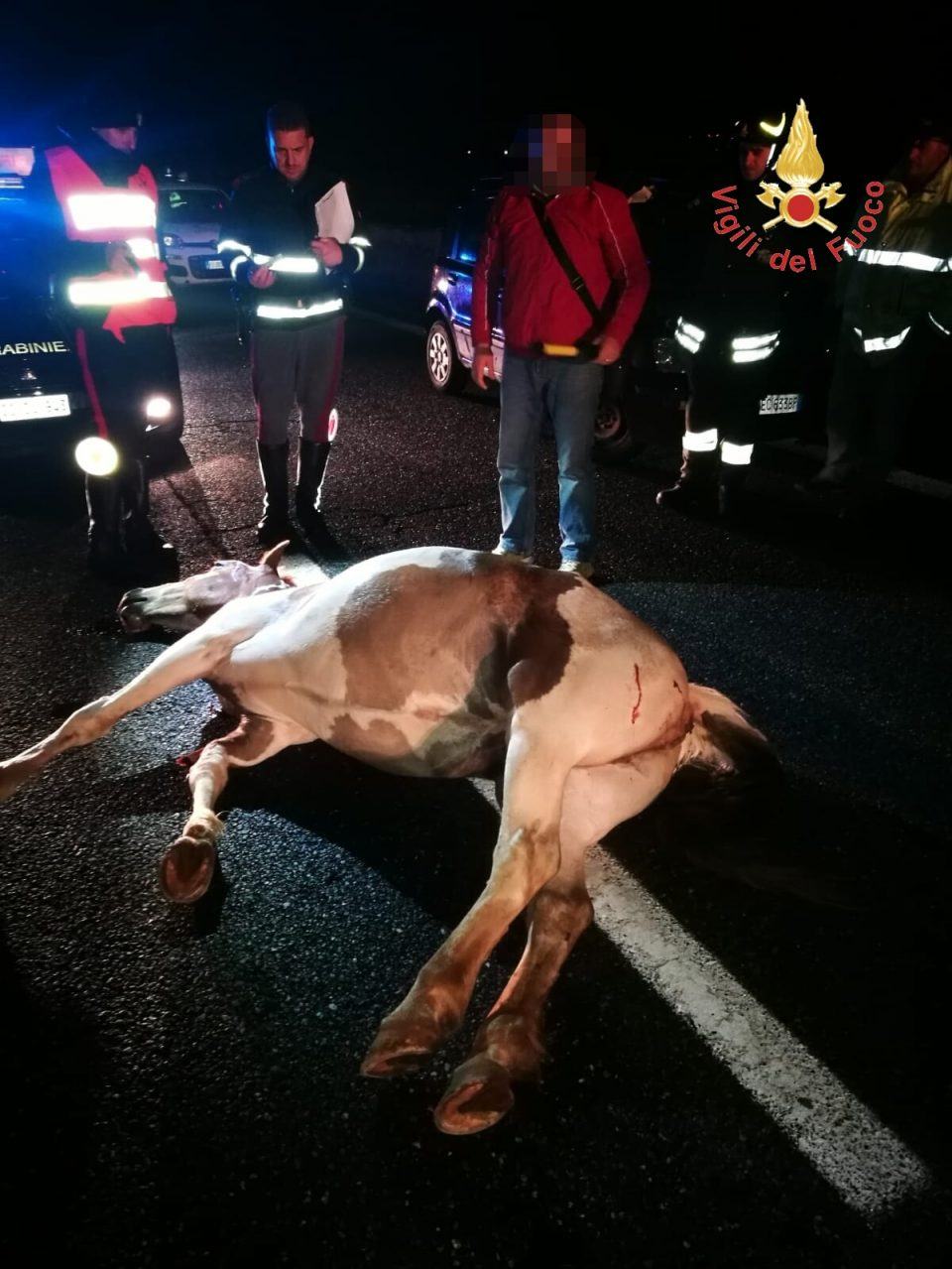 Cavallo invade la corsia della Statale, investito da un’auto. Un ferito