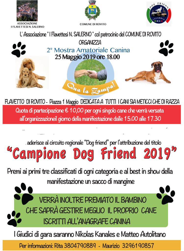 “La mostra – ha concluso Cicero – è aperta a tutti i cani, sia meticci che di razza e saranno premiati i primi tre classificati di ogni categoria. Ovviamente sarà selezionato anche il best in show della manifestazione. Durante la mostra è previsto uno spazio interamente dedicato ai bambini ed al rapporto instaurato con il proprio amico a 4 zampe, con un premio speciale che sarà attribuito al bimbo che saprà interagire e meglio gestire il proprio cane”. A margine della mostra canina, che avrà come giudici di gara Nikolas Kanales e Matteo Autolitano, sarà possibile degustare prodotti tipici della presila cosentina ed ascoltare buona musica dal vivo.