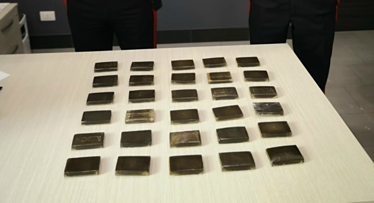I militari hanno notato che il conducente, alla vista del dispositivo di controllo, rallentava la propria marcia e, insospettiti dall’andamento dell’autovettura e riconosciuto l’uomo alla guida, una volta avvicinatosi, hanno intimato l’alt ed hanno effettuato il controllo. L’atteggiamento del conducente ha destato sospetto e, pertanto, i controlli sono stati effettuati sulla persona nonché sul veicolo e, a seguito di accurata perquisizione, gli uomini dell’Arma hanno rinvenuto una quantità di sostanza stupefacente del tipo hashish pari a tre chilogrammi, suddivisa in 30 “panetti” da centro grammi ciascuno. Alcuni erano occultati nel vano motore, mentre altri sotto il sedile posteriore dell’autovettura.