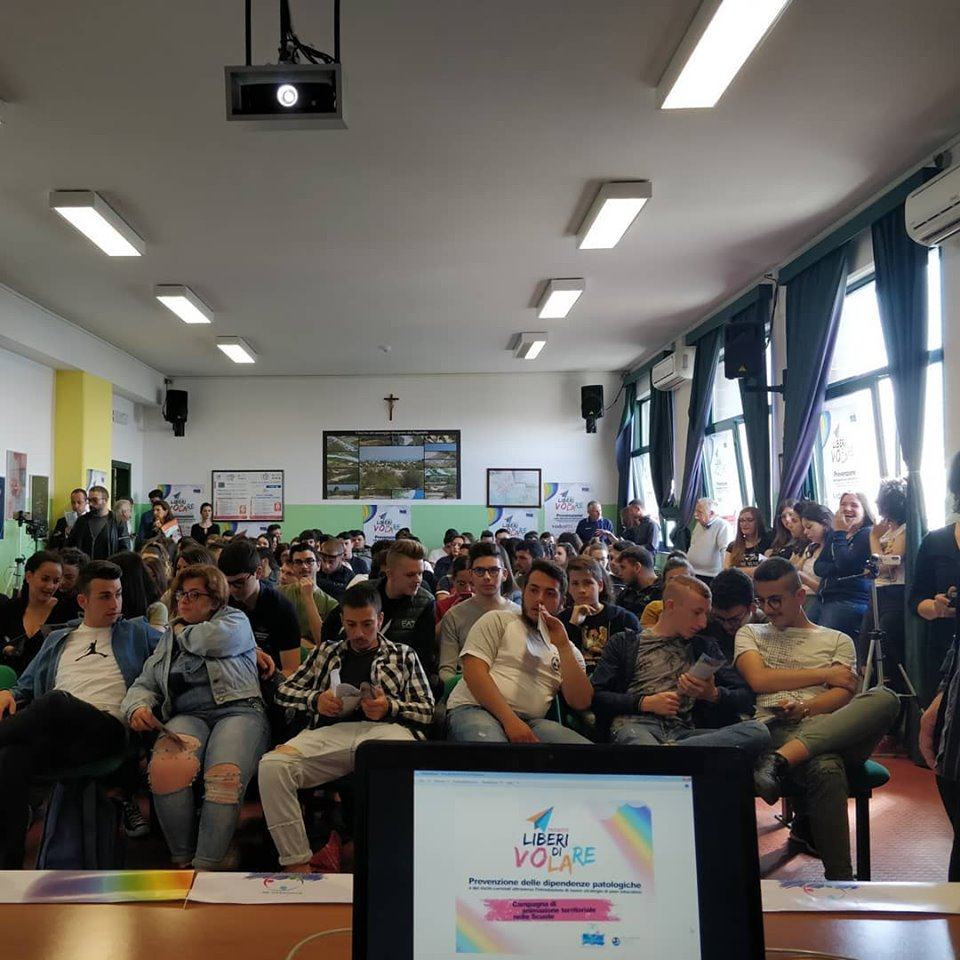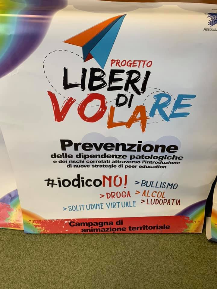 La cosa importante importantissima oggi è che ciò che si è creato è per voi. Non devono esistere paure e dobbiamo confrontarci. Oggi registro un dato importante: ciò che abbiamo fatto qui a scuola quel concetto che era qualcosa di scientifico e letto sui libri di scuola “Peer educations” che io amo definire educazione alla pari, insieme, un confronto tra noi docenti e voi studenti. L’altro dato che registro è la sensibilità che la città ha verso queste problematiche attraverso sportelli di prevenzione: la parola chiave, l’essenza del progetto “Liberi di Volare”, la natura preventiva delle cose. Una volta arrivati ad essere patologicamente coinvolti il problema diventa più difficile da gestire. Questa educazione alla pari invece deve portare a fare rete e nel nostro piccolo ci stiamo riuscendo»