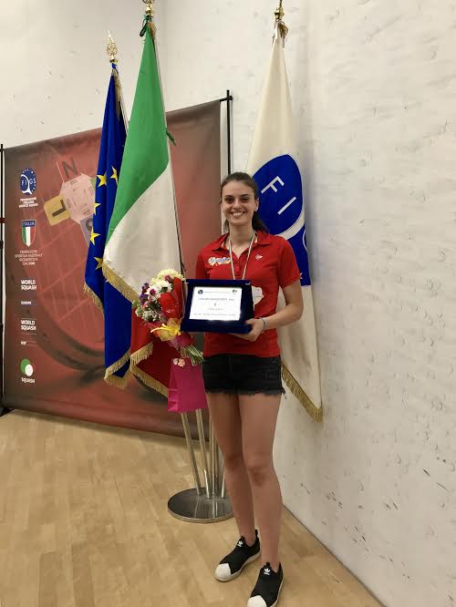 Tra Cristina e la Vittoria dell’Italian Junior Open rimaneva solo la rumena Selena Georgieva, atleta solida e davvero tosta, capace di un gioco molto fisico e fastidioso. Infatti nel primo set l’italiana perdeva di misura per 10-12 e nel secondo con tanta caparbietà ai lunghissimi vantaggi, Cristina con 19-17 riportava il match in parità,  poi tutto facile con 11-2 e 11-7 . Bel 3 a 1 finale ed un altro fantastico podio per un’atleta che sembra non volersi più fermare.