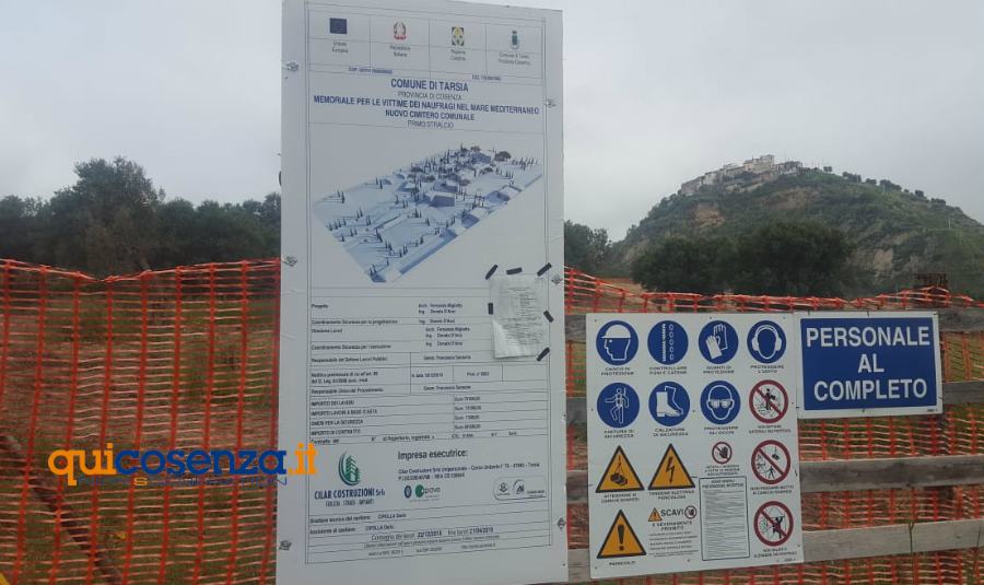 L’opera, finanziata, grazie al Presidente Mario Oliverio, dalla Regione Calabria, viene realizzata, per la disponibilità e ospitalità del sindaco Roberto Ameruso, nel piccolo, accogliente comune di Tarsia, in un luogo molto bello e particolarmente simbolico, una collina della Pace, un’area di oltre 28mila mq, immersa tra gli ulivi secolari (che resteranno intatti)di fronte al Lago e al vecchio camposanto comunale (in parte ebraico) e a breve distanza dall’ex Campo di Concentramento fascista più grande d’Italia, quello di Ferramonti di Tarsia, luogo di prigionia ma anche di grande umanità, dove nessuno degli oltre tremila internati subì mai alcuna violenza. Saranno il papà, Abdullah, e la zia paterna del piccolo Alan, Tima Kurdi, ad inaugurare il monumentale Cimitero dei Migranti, che, nel rispetto delle diverse culture religiose, darà una dignitosa sepoltura ai tanti poveri sfortunati profughi, uomini, donne e bambini che, fuggendo da guerre, persecuzioni e miseria, perdono la vita nel Mediterraneo, cancellando, in questo modo e definitivamente, la disumanità di quei corpi, di poveri migranti, recuperati in mare privi di vita e quasi tutti senza nome, seppelliti, con un semplice numerino, in tanti piccoli, sperduti cimiteri, che di fatto ne cancellano per sempre ogni ricordo e riferimento per i loro familiari, dei lontani Paesi del mondo, che non sapranno mai dove andare un giorno per cercarli, portare un fiore e dire una preghiera”.