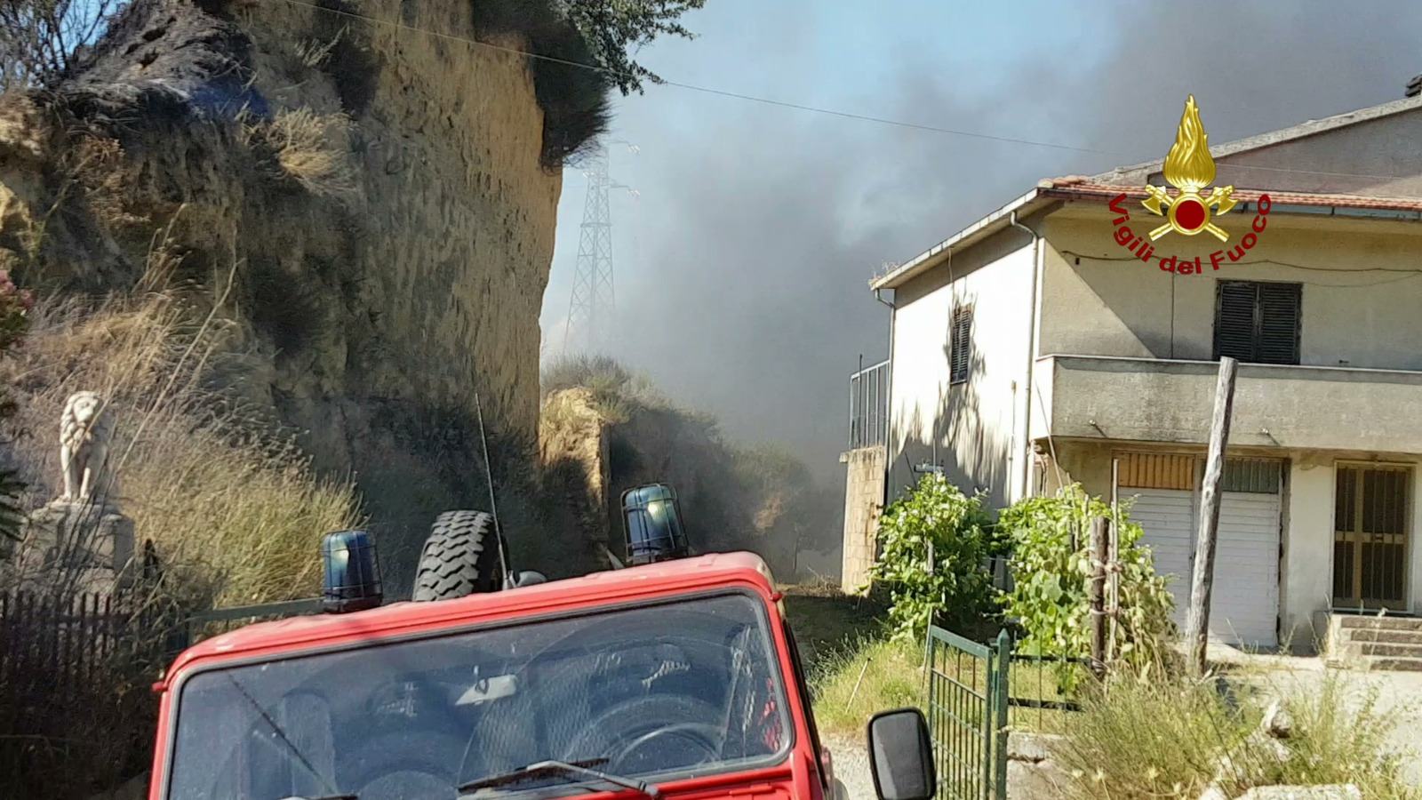 Le fiamme, alimentate anche dal vento, stanno interessando la collina proprio sotto il centro storico di Rende dove si trovano anche alcune abitazioni. A fuoco tre magazzini che contenevano materiale plastico. Sul posto lavorano tre squadre dei Vigili del fuoco