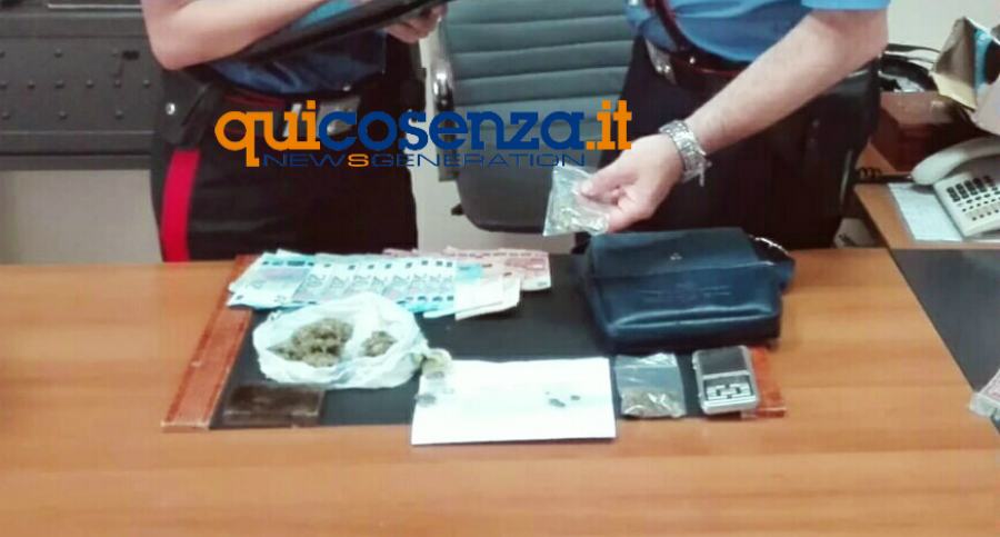 I Carabinieri hanno accertato anche le modalità di vendita della sostanza stupefacente, individuando le figure che fungevano da pusher ed in un vicolo della piazzetta Portofino, in Via Venezia, è stato bloccato D.A.C., 22enne coriglianese che nonostante il tentativo di fuga e di disfarsi del quantitativo di droga che deteneva in un borsello che portava a tracollo, è stato bloccato dai carabinieri. Dentro il borsello aveva un vero e proprio tesoretto. Un panetto di hashish di 100 grammi, marijuana ancora da dividere in dosi (circa 25 grammi), e 600 euro in contanti. Poi i militari hanno anche perquisito la sua abitazione trovando altra droga.