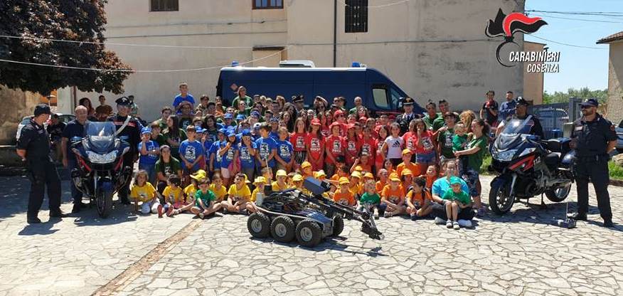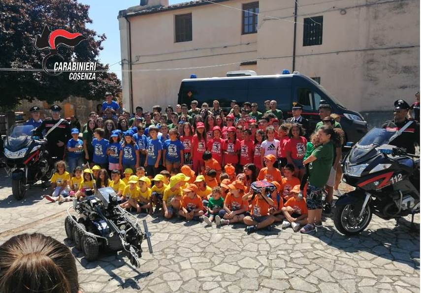 COSENZA – Nella mattinata di ieri, nel piazzale antistante la chiesa di Santa Maria Assunta, come coronamento di una fantastica esperienza formativa, i bambini del “Grest” del gruppo estivo di Donnici, a Cosenza, hanno ricevuto in visita i Carabinieri della Compagnia di Cosenza e degli artificieri antisabotaggio del Comando Provinciale di Cosenza, i quali hanno parlato della loro azione essenziale sul territorio, mirata ad assicurare principalmente il rispetto della legalità e la sicurezza dei cittadini.