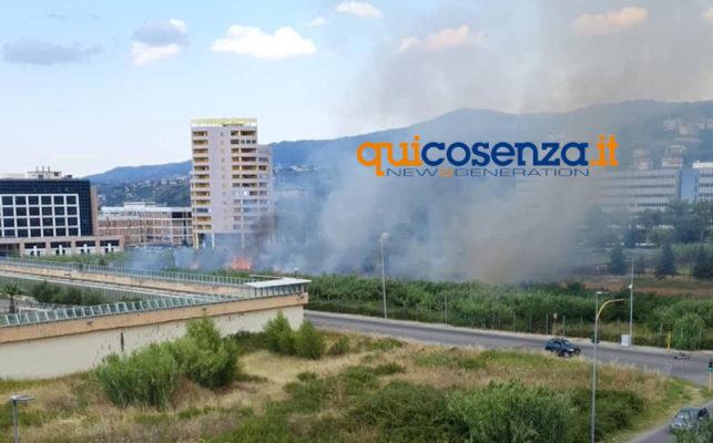 COSENZA – Un rogo, con una lunga colonna di fumo, si è sviluppato in questi minuti su un terreno con alcune sterpaglie su via Popilia, nei pressi della casa circondariale “Sergio Cosmai” e la traversa di Via Storino nei pressi della chiesa di San Francesco. Sul posto sono intervenute le squadre dei vigili del fuoco del comando di Cosenza ce stanno provvedendo a spegnere le fiamme. A parte il fumo acre che ha messo in difficoltà gli automobilisti in transito, per ora non si segnalano danni a cose o persone.