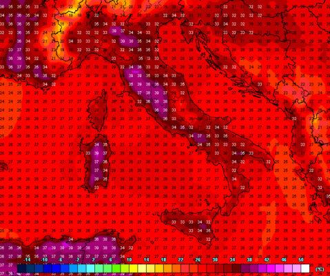 Nonostante l’Italia non sia l’obiettivo principale della rimonta anticiclonica africana, l’ondata di calore si farà sentire al nord e buona parte del centro, zone dove la calura risulterà più intensa su Toscana, Umbria, Lazio, Sardegna e Val Padana (temperature vicine ai 39/40 gradi) e con un deciso aumento anche del tasso di umidità. Anche la Calabria, dove già le temperature sono nettamente aumentate da domenica, avrà la sua dose di caldo mitigato e reso più sopportabile dalla presenza di correnti fresche da nord e le temperature dovrebbero risultare contenute. Sono previsti comunque picchi di 34/35 gradi. Il caldo si dovrebbe attenuare nel fine settimana un pò ovunque. Le uniche regioni che rimarranno ‘afose’ saranno la Puglia e parte della Sicilia.