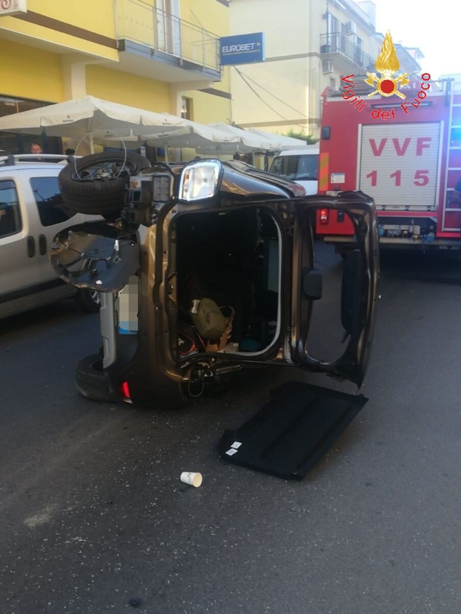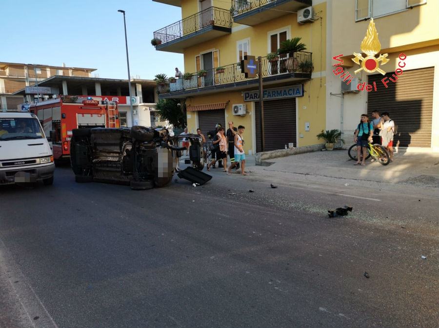 CATANZARO – Due le vetture coinvolte una Fiat Panda ed una Dacia Sandero. Quest’ultima a seguito dell’impatto si ribaltava su di un lato.