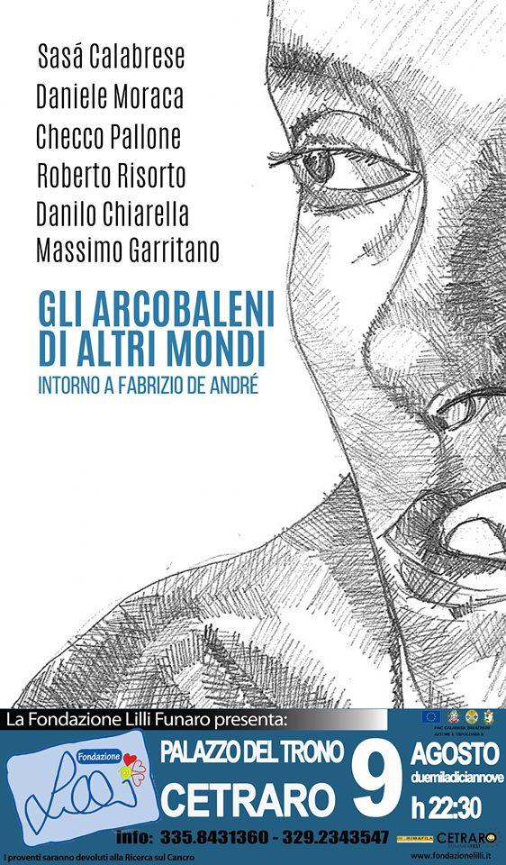 Il concerto di Cetraro, città di mare, riscrive una nuova mitologia del Mediterraneo: la Calabria, come Genova, ha visto alternarsi e coesistere numerosi popoli e culture che provenivano da tutti i continenti. Proprio De André descrive, con una delle sue canzoni più rappresentative della carriera artistica “Creuza de mä”, Genova come città dalle frontiere aperte, porto di mari vicini e lontani. Luogo dove si incontrano culture diverse, punto nevralgico di scambi tra razze e mercanzie, porto franco dagli orizzonti sospesi, il Mediterraneo come luogo di divergenze, condivisioni e incontri che riescono armoniosamente a convivere. De André stesso scrisse che questo testo non fu dedicato né al genovese né a Genova, ma al bacino del Mediterraneo, confluenze di mari, terre e popoli.