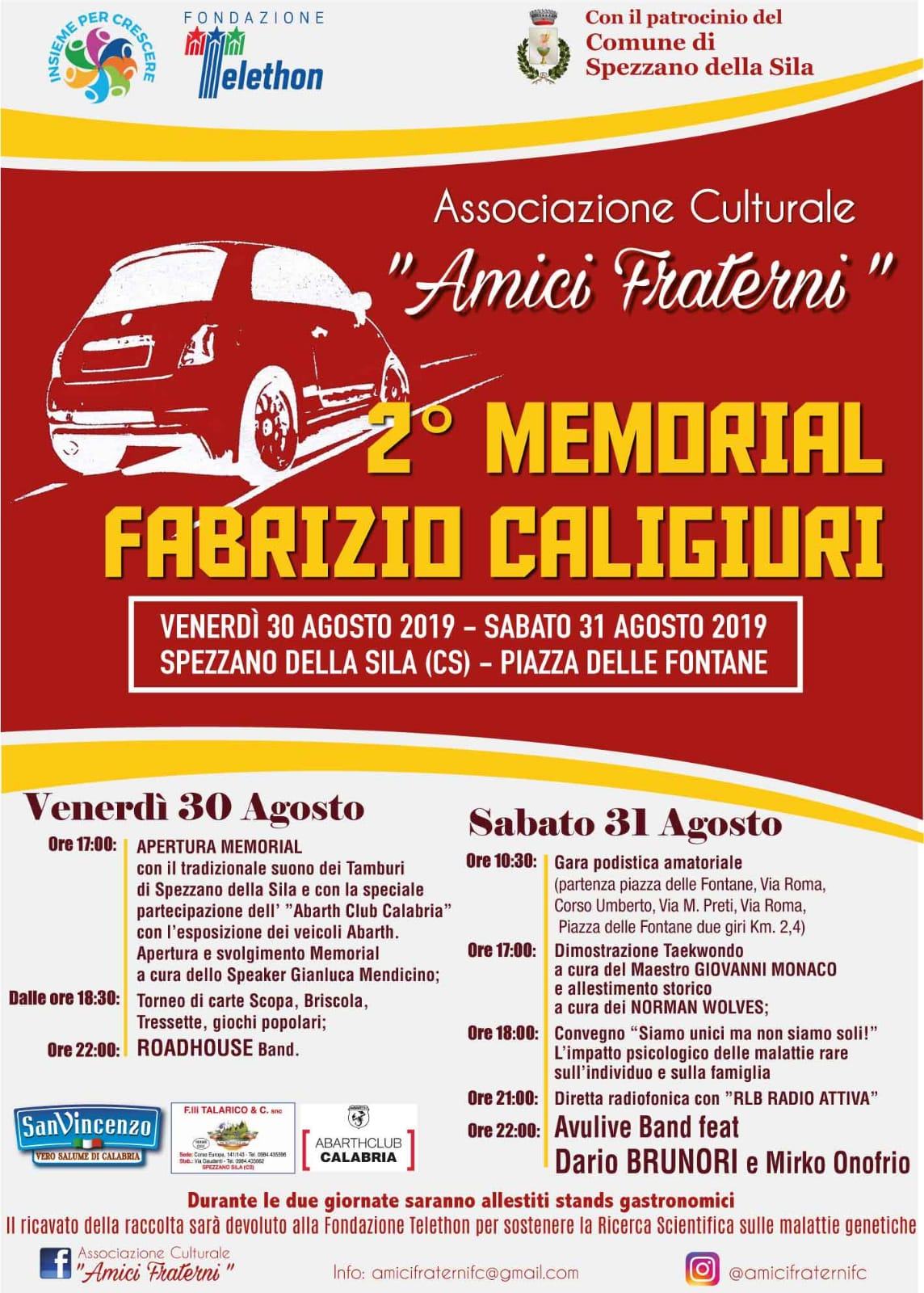 Oggi e domani, sabato 31 agosto Spezzano della Sila ospiterà il “secondo memorial Fabrizio Caligiuri” promosso dall’Associazione Amici Fraterni