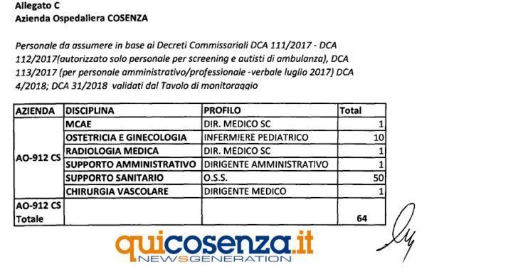 Sanità, Cotticelli autorizza 429 assunzioni: 74 all’Asp di Cosenza, 64 all’Annunziata