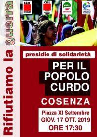 COSENZA – Cgil Cisl e Uil esprimono la loro profonda preoccupazione di fronte ai bombardamenti contro la popolazione curda nel nord della Siria e all’ingresso di truppe turche in Siria, Siria e chiedono lo stop ai bombardamenti e alla guerra che rischia di creare a breve una nuova ennesima tragedia umanitaria. Per queste ragioni, le sigle sindacali provinciali e comprensoriali, chiamano lavoratori, pensionati, giovani e donne a partecipare al presidio di solidarietà organizzato per giorno 17 ottobre dalle ore 17.30 a Cosenza, presso Piazza XI Settembre. La pericolosa e sanguinosa escalation militare – scrivono i sindacati in una nota – in atto colpisce una regione come la Siria, già martoriata dalla guerra cominciata nel 2011 e che ha fatto oltre 250.000 vittime, quasi la metà civili e colpisce un popolo, quello curdo, che ha contribuito in maniera determinante a frenare l’ascesa del sedicente stato islamico e del terrorismo. E mentre l’America di Trump volta le spalle ai curdi, l’Europa assiste inerme alla decisioni di uno stato come la Turchia, che in questi anni ha ricevuto sei miliardi per accogliere i profughi siriani che ora minaccia di lasciar partire per invadere l’Europa.