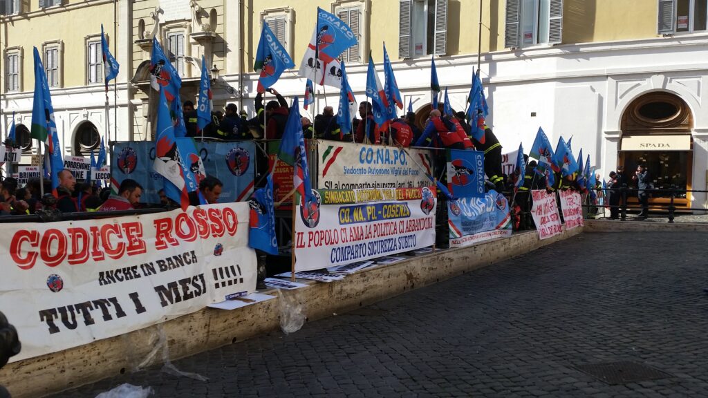 I pompieri in piazza per chiedere l’equiparazione retributiva e previdenziale con il personale delle Forze di polizia ad ordinamento civile, cui vanno aggiunti 14 milioni di euro per parificare agli altri Corpi, anche lo stanziamento per il riordino delle carriere