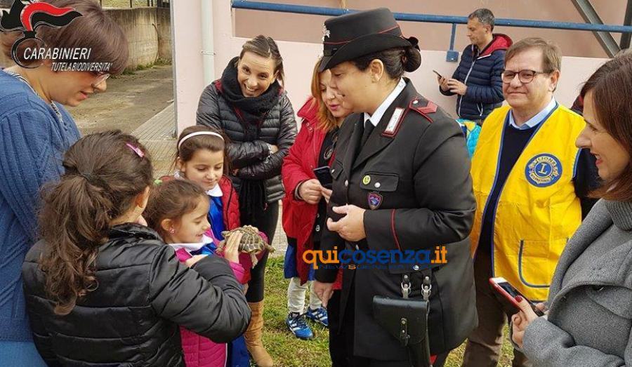 COSENZA – Dopo il successo dello scorso anno è ripartito il progetto di educazione ambientale “La Tartaruga va a Scuola”; iniziativa ideata dal Reparto Carabinieri Biodiversità di Cosenza, diretto dal Ten.Col. Gaetano Gorpia, in collaborazione con i Lions Club di Castrovillari, Corigliano Thurium, Cosenza Rovito Sila Grande, Rossano Sybaris e l’Oasi WWF Policoro Herakleia.