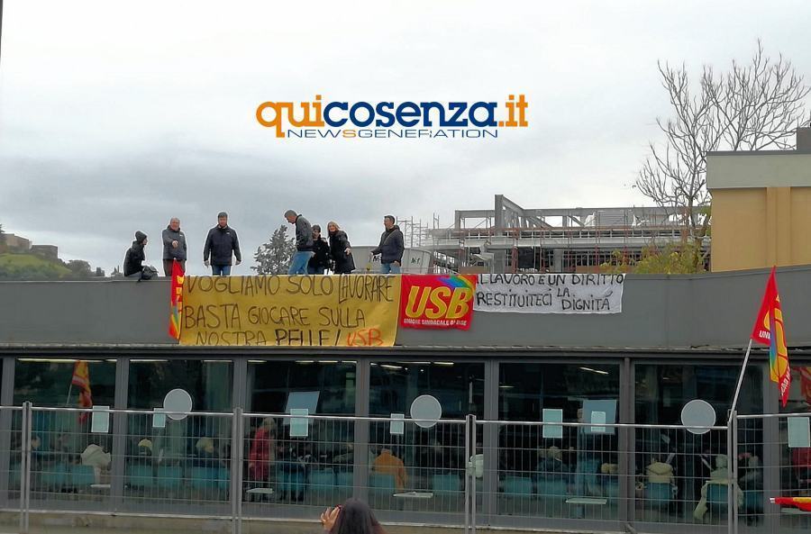 Cosenza, protestano sul tetto del CUP i lavoratori SEATT a rischio licenziamento