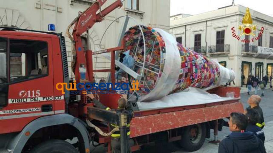 REGGIO CALABRIA – Un contributo importante quello degli esperti del comando provinciale dei vigili del fuoco di Reggio Calabria che, su richiesta della presidente dell’AIL reggina, la dott.ssa Rosalba Scali, hanno provveduto ieri al trasporto ed al posizionamento di un albero di Natale alto circa sei metri e costruito interamente in metallo. Il grande manufatto realizzato ed offerto all’AIL da un’azienda reggina, è stato posizionato nello spazio antistante la pinacoteca civica, per allietare le prossime festività natalizie.