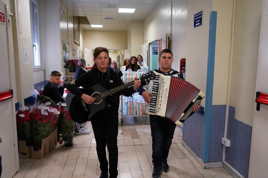 COSENZA – Una mattinata intensa e carica di emozioni quella di ieri nel reparto di oncologia dell’ospedale dell’Annunziata di Cosenza. Le instancabili volontarie di Onco Med, lo studio oncologico gratuito di Cosenza, hanno scelto la giornata internazionale del volontariato per far sentire la propria vicinanza a chi in questo momento vive nella paura e nell’angoscia. Un carrello carico di doni (forniti da una nota farmacia di Corigliano), una chitarra e una fisarmonica suonate dagli splendidi allievi del maestro Salfi, hanno invaso le corsie dell’ospedale, tra gli sguardi increduli e allo stesso tempo felici, di parenti e operatori sanitari.