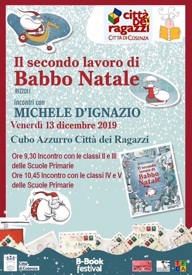 COSENZA – Nell’ambito delle attività di “Aspettando il B-Book Festival”, la Città dei Ragazzi del Comune di Cosenza organizza la presentazione del libro “Il secondo lavoro di Babbo Natale” di Michele D’Ignazio, edito da Rizzoli e illustrato da Sergio Olivotti.