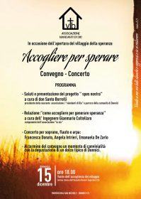 È solo il “primo passo” di un progetto più ampio che prevede la realizzazione di un “centro” dove medici volontari potranno prestare cure a titolo assolutamente gratuito, anche specialistiche, a persone disagiate; una casa di accoglienza per donne e minori vittime di violenza di genere; una casa dove poter ospitare coniugi in crisi familiare e poterli anche seguire per la risoluzione di tutte le problematiche conseguenti; un centro di aggregazione per giovani e ragazzi. Domani pomeriggio alle 18 nel salone parrocchiale di Donnici Superiore, si terrà la manifestazione di “apertura” del “Villaggio della Speranza” con un convegno/concerto, nell’ambito del quale Don Santino, presenterà il progetto “spes nostra” e l’ing. Gianmario Coltellaro relazionerà sul tema “come accogliere per generare speranza”. Seguirà, poi, un concerto per soprano, flauto e arpa a cura di Francesca Donato, Angela Intrieri ed Emanuela De Zarlo.