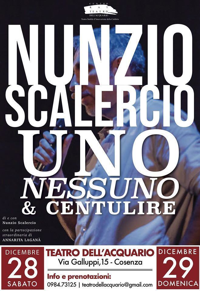 COSENZA – Quante anime ha il cittadino bruzio? Esiste un “tipo” che può racchiuderne tutte le caratteristiche o per descriverlo c’è bisogno di individuare più di una tipologia di caratteri? Nunzio Scalercio cercherà di raccontarcene alcuni il 28 e 29 dicembre alle ore 21 sulle tavole del teatro dell’Acquario di Cosenza nello spettacolo “Uno, nessuno & Centulire”. Sul palco si materializzeranno il politologo internazionale Mikuz Luttwag (parente di secondo grado, da parte del padre, di Edward Luttwag), il “parco”-trafficante Pablo Gaviria “Chittipigli” All’Escobar, l’astuto Commissario Montegiordano, il pio Silvano e molti altri.