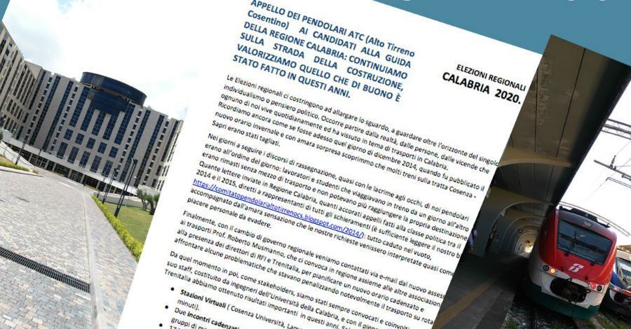 DIAMANTE (CS) – “Le Elezioni regionali ci costringono ad allargare lo sguardo, a guardare oltre l’orizzonte del singolo individualismo o pensiero politico. Occorre partire dalla realtà, dalle persone, dalle vicende che ognuno di noi vive quotidianamente ed ha vissuto in tema di trasporti in Calabria.” Così si legge in una lettera del Comitato Pendolari Alto Tirreno Cosentino, indirizzata ai candidati alla guida della Regione Calabria 2020. “Ricordiamo – si legge ancora nella missiva – ancora come se fosse adesso quel giorno di dicembre 2014, quando fu pubblicato il nuovo orario invernale e con amara sorpresa scoprimmo che molti treni sulla tratta Cosenza – Sapri erano stati tagliati. Nei giorni a seguire i discorsi di rassegnazione, quasi con le lacrime agli occhi, di noi pendolari erano all’ordine del giorno: lavoratori e studenti che viaggiavano in treno da un giorno all’altro erano rimasti senza mezzo di trasporto e non potevano più raggiungere la propria destinazione. Quante lettere inviate in Regione Calabria, quanti accorati appelli fatti alla classe politica tra il 2014 e il 2015, diretti a rappresentanti di tutti gli schieramenti (è sufficiente leggere il nostro blog https://comitatopendolarialtotirrenocs.blogspot.com/2014/): tutto caduto nel vuoto, accompagnato dall’amara sensazione che le nostre richieste venissero interpretate quasi come un piacere personale da evadere. Finalmente, con il cambio di governo regionale veniamo contattati via e-mail dal nuovo assessore ai trasporti Prof. Roberto Musmanno, che ci convoca in regione assieme alle altre associazioni e alla presenza dei direttori di RFI e Trenitalia, per pianificare un nuovo orario cadenzato e affrontare alcune problematiche che stavano penalizzando notevolmente il trasporto su rotaia. Da quel momento in poi, come stakeholders, siamo stati sempre convocati e coinvolti. Assieme al suo staff, costituito da ingegneri dell’Università della Calabria, e con il pieno supporto di Rfi e Trenitalia abbiamo ottenuto risultati importanti in questi anni.