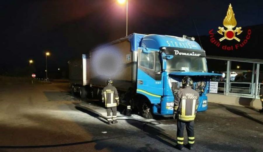 Il mezzo ha preso fuoco in prossimità dell’area di sosta di Pizzo Calabro. E’ stato lo stesso conducente che ha arrestato la marcia del tir e ha chiesto soccorso