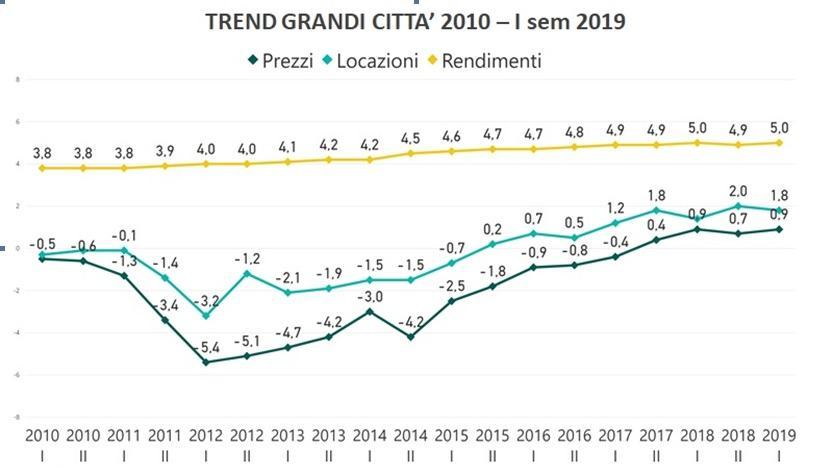 ROMA – Nella prima parte del 2019 i segnali positivi dal mercato immobiliare sono numerosi: domanda in crescita, tempi di vendita in contrazione, prezzi in ripresa (in alcune realtà) e canoni di locazione sempre più elevati. Dal 2010, per la prima volta, i canoni sono in aumento su tutte le tipologie considerate: monolocali (+2,3%), bilocali e trilocali (+1,8%). In alcune città l’incremento è decisamente più elevato a causa della bassa offerta e questo sta portando nuovamente gli investitori sul mattone. Essi sono sicuramente attratti dalla rivalutazione degli immobili ma soprattutto dai rendimenti annui lordi che si attestano intorno al 5% per i bilocali e al 4,6% per i trilocali. Dalle analisi si evince che essi rappresentano il 17,9% di coloro che hanno acquistato con le agenzie affiliate Tecnocasa e Tecnorete.