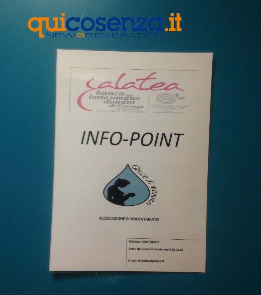 “La Banca del latte umano donato è una struttura capace di raccogliere, controllare, trattare, conservare e distribuire il latte.” Ha spiegato la Dottoressa Maria Pia Galasso, esperta in allattamento materno, responsabile della Banca del latte “Galatea” (fondata nel 2007), divisione U.O.C. Neonatologia e TIN (Terapia Intensiva Neonatale) dell’Azienda Ospedaliera Annunziata di Cosenza, diretta dal Dr. Gianfranco Scarpelli. Nel 2016 è stata riconosciuta Banca regionale, punto di riferimento di tutte le altre TIN (info@bludgalatea.it). Il suo nome deriva dalla dea del latte, Galatea, e il suo fine è custodire il latte materno donato per offrirlo a chi ne ha bisogno.