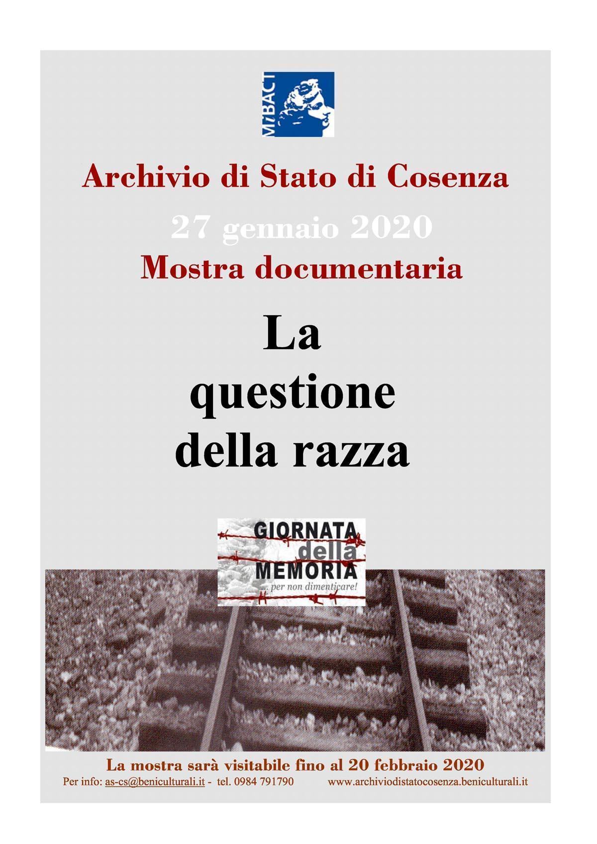 COSENZA – S’intitola “La questione della razza”, la mostra documentaria promossa per il Giorno della memoria, il 27 gennaio 2020 dall’Archivio di Stato di Cosenza; un’opportunità per i visitatori di ripercorre uno dei periodi più tragici della nostra storia. Un appuntamento annuale per far riflettere le nuove generazioni sulla discriminazione razziale che ebbe come epilogo censimenti degli ebrei, accertamenti di razza, divieti ed espulsioni, leggi razziali, internamento nei campi di concentramento. Per non dimenticare. La mostra documentaria resterà aperta fino al 20 febbraio 2020 e sarà visitabile in orario d’ufficio.