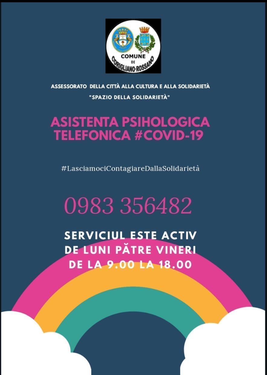 CORIGLIANO-ROSSANO (CS) – “Emergenza Covid-19 (Coronavirus), continuano le iniziative che l’Amministrazione Comunale ha messo in campo sin da subito e sta portando avanti insieme alla Protezione Civile. Con un obiettivo: rafforzare con il mondo dell’associazionismo e del volontariato la rete di assistenza e solidarietà in parallelo alle azioni di contrasto alla diffusione del virus.” È quanto fa sapere l’assessore alla città della Cultura e della Solidarietà Donatella Novellis rimarcando che tra le iniziative inserite nello Spazio della Solidarietà, avviato nei giorni scorsi, rientra anche il servizio di supporto psicologico.