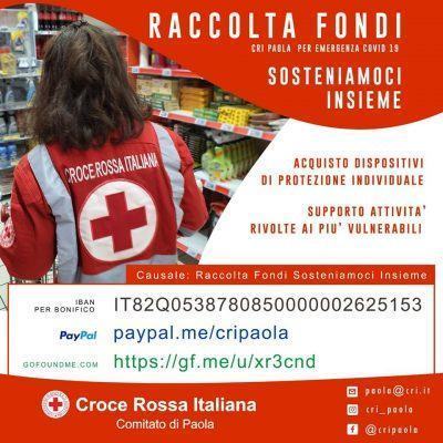 Croce Rossa Italiana – Comitato di Paola, ha organizzato una raccolta fondi per supportare la comunità locale, in questa epocale emergenza sanitaria globale “Covid-19”, che da diverse settimane, sta affliggendo l’intero territorio Nazionale e non solo