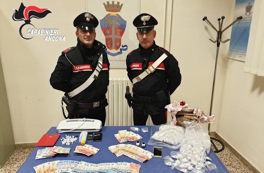 JESI (AN) – Quantitativi di cocaina in viaggio dalla Calabria alle Marche su bus di linea. Lo hanno scoperto i carabinieri del Nucleo Operativo e Radiomobile della Compagnia di Jesi, che dopo mesi di indagini, hanno dato esecuzione ad una misura di custodia cautelare nei confronti di 5 persone (4 calabresi ed uno jesino) , tre in carcere e due ai domiciliari, emessa dal gip del Tribunale di Ancona, su proposta della locale Procura della Repubblica. Le indagini, tra marzo 2019 e febbraio scorso, hanno a messo in luce un sodalizio criminoso in Vallesina dedito allo spaccio soprattutto di cocaina, con un importante canale di rifornimento proveniente da Gioia Tauro (Reggio Calabria). A fare da tramite un calabrese residente a Jesi da diversi anni, che si serviva del supporto di spacciatori locali.