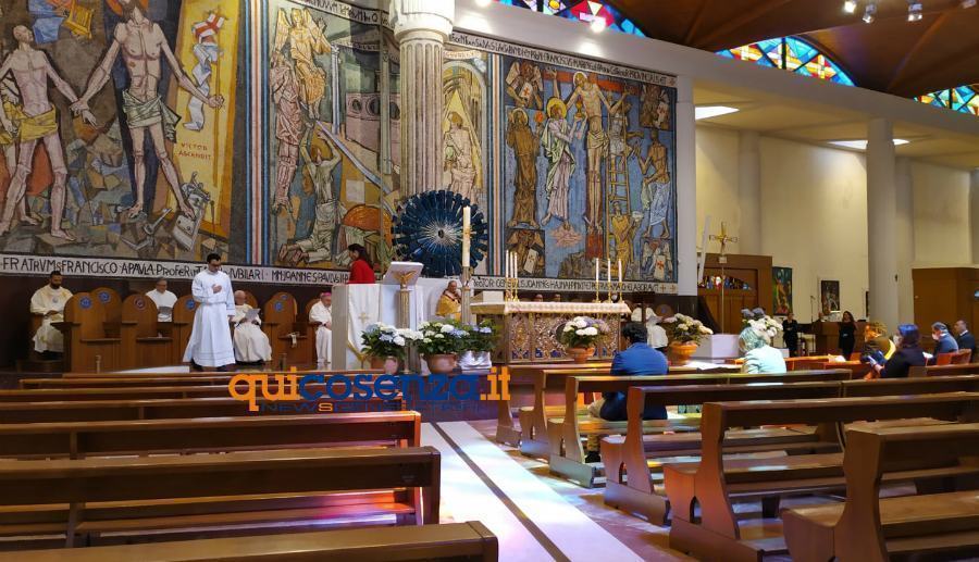 PAOLA (CS) – “Oggi, nonostante il periodo difficile che stiamo vivendo siamo tutti qui a Paola”. Apre così il vescovo della diocesi di Cosenza Bisignano, mons. Francesco Nolè l’omelia nella Chiesa del Santuario intitolato a San Francesco di Paola nell’ambito della celebrazione del 4 maggio. In chiesa, seduti e distanziati, anche il presidente della Regione Calabria, Jole Santelli, il sindaco di Paola, Roberto Perrotta, mons. Giuseppe Fiorini Morosini, vescovo di Reggio Calabria e poche altre persone appartenenti al clero, autorizzate ad assistere alla messa.