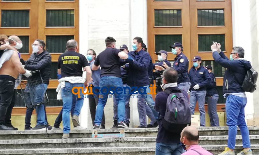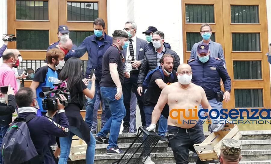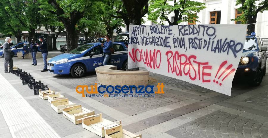 COSENZA – Momenti di tensione questa mattina davanti la Prefettura di Cosenza, dove un gruppo di persone, appartenenti al comitato PrendoCasa, ha protestato per l’insufficienza delle politiche messe in atto a sostegno delle famiglie più bisognose. In piazza, anche gli uomini della Questura di Cosenza a controllare che fossero rispettate le misure di sicurezza e distanziamento per evitare il contagio e il propagarsi del virus Covid 19. I manifestanti hanno tentato di fare irruzione all’interno del Palazzo di Governo con delle cassette di legno vuote che, a detta dei manifestanti, indicano “lo stato di crisi e necessità delle famiglie in questo difficile momento”.