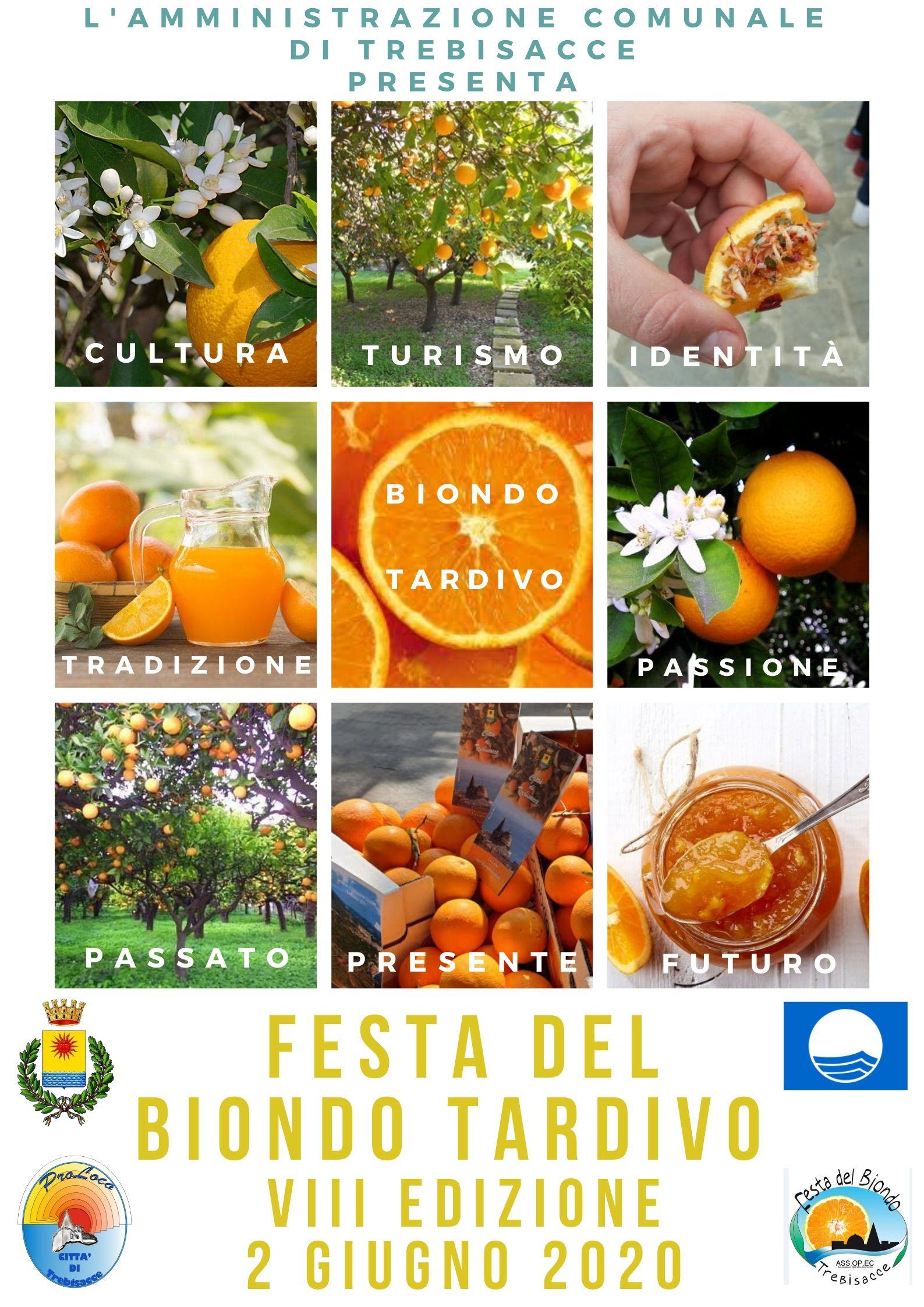 TREBISACCE (CS) – L’emergenza Covid-19 non può cancellare il desiderio di portare avanti una consolidata tradizione e di celebrare un marcatore identitario della storia e della cultura di Trebisacce: il Biondo Tardivo, l’arancia autoctona di Trebisacce! Proprio per questo motivo, con una formula rivista in funzione del rispetto delle disposizioni di sicurezza in atto, anche quest’anno, nella data consolidata del 2 giugno, la città di Trebisacce celebrerà l’VIII Edizione della Festa del Biondo Tardivo, puntando i riflettori sui Giardini di Trebisacce, luogo dove il Biondo è nato e dove ha scritto la storia del territorio.