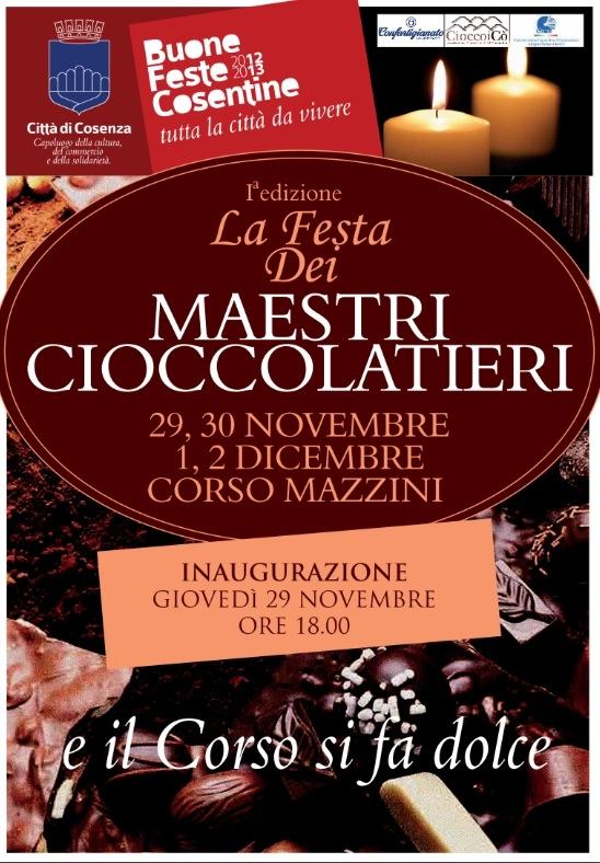 tecniche di realizzazione delle più diverse delizie a base di cacao. La prima Festa dei Maestri cioccolatieri si svolgerà a Cosenza. La location delle prelibatezze sopraffini sarà corso Mazzini. L’evento, in programma dal 29 novembre al 2 dicembre, è stato realizzato dalla Confartigianato Cosenza, unitamente alle Associazioni CioccoiCò (Associazione Cioccolatieri del Cosentino) e CICAS (Confederazione Imprenditori Commercianti Artigiani Turismo Servizi) e con il patrocinio del Comune di Cosenza.Tutti i particolari di quello che si appresta a diventare un appuntamento annuale saranno forniti nel corso di una conferenza stampa che si svolgerà martedì alle 12 nel Salone di Rappresentanza del Comune, presenti i tre presidenti Roberto Matragrano (Confartigianato), Francesco Occhiuto (Cioccoicò) e Marco Morrone (CICAS), il sindaco Mario Occhiuto, l’assessore alla crescita economica urbana Luciano Vigna.