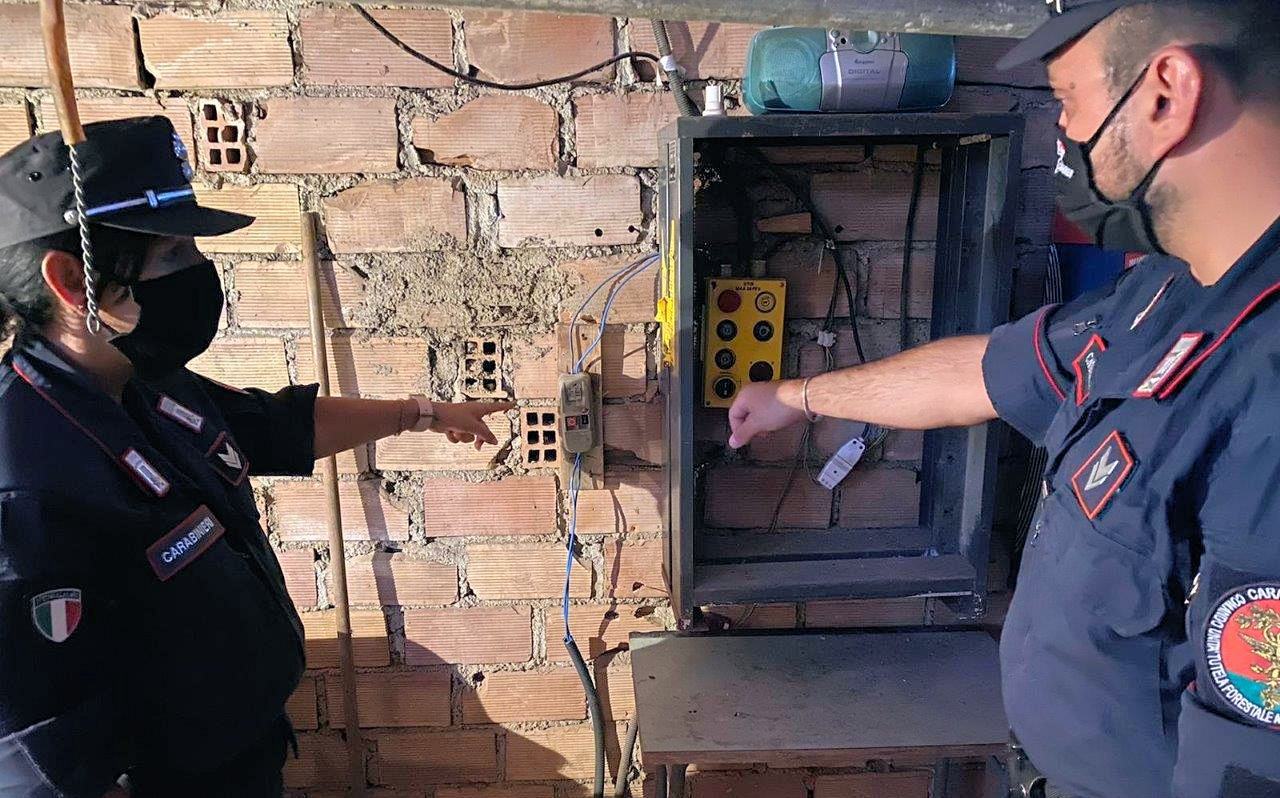 Inoltre, ben nascosto in una breccia appositamente creata nel muro dell’abitazione, è stato trovato un by-pass fatto su cavo elettrico di proprietà dell’Enel, che, a seguito del taglio del cavo principale, permetteva l’allaccio diretto alla rete elettrica. Era stato anche installato un “teleruttore” che, appositamente azionato in caso di un controllo, permetteva di staccare l’alimentazione diretta della rete elettrica, eludendo così eventuali controlli. Manomissioni varie che rappresentano un pericolo per l’incolumità degli occupanti della singola abitazione, oltre che per tutto il vicinato poiché, tali manomissioni, aumentano esponenzialmente il rischio di cortocircuito. A seguito della scoperta si è quindi proceduto alla denuncia dell’uomo.